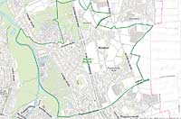 Die Südstadt, der bevölkerungsreichste Stadtteil Fürths, liegt südlich der Bahnstrecke und des Hauptbahnhofs.